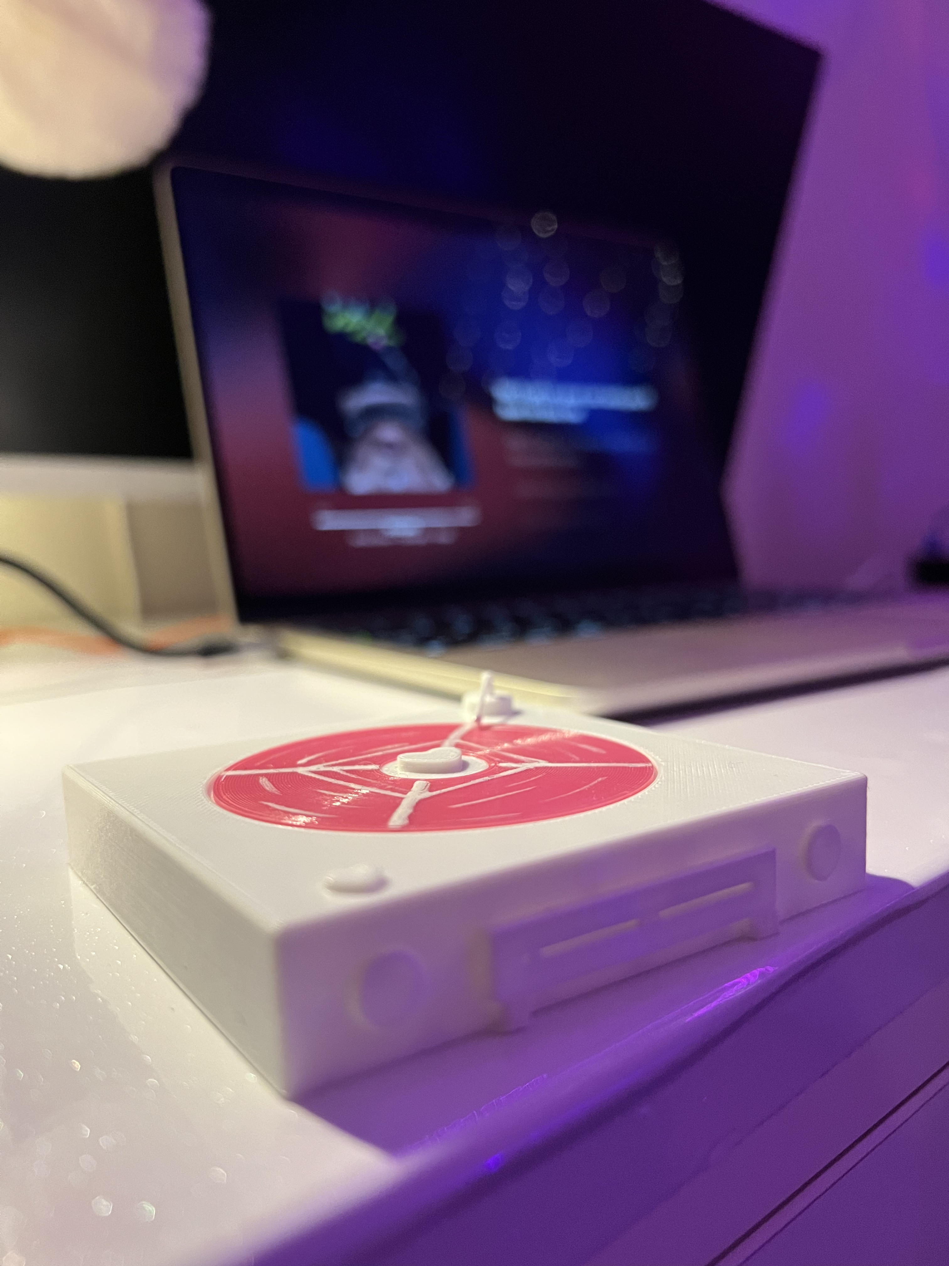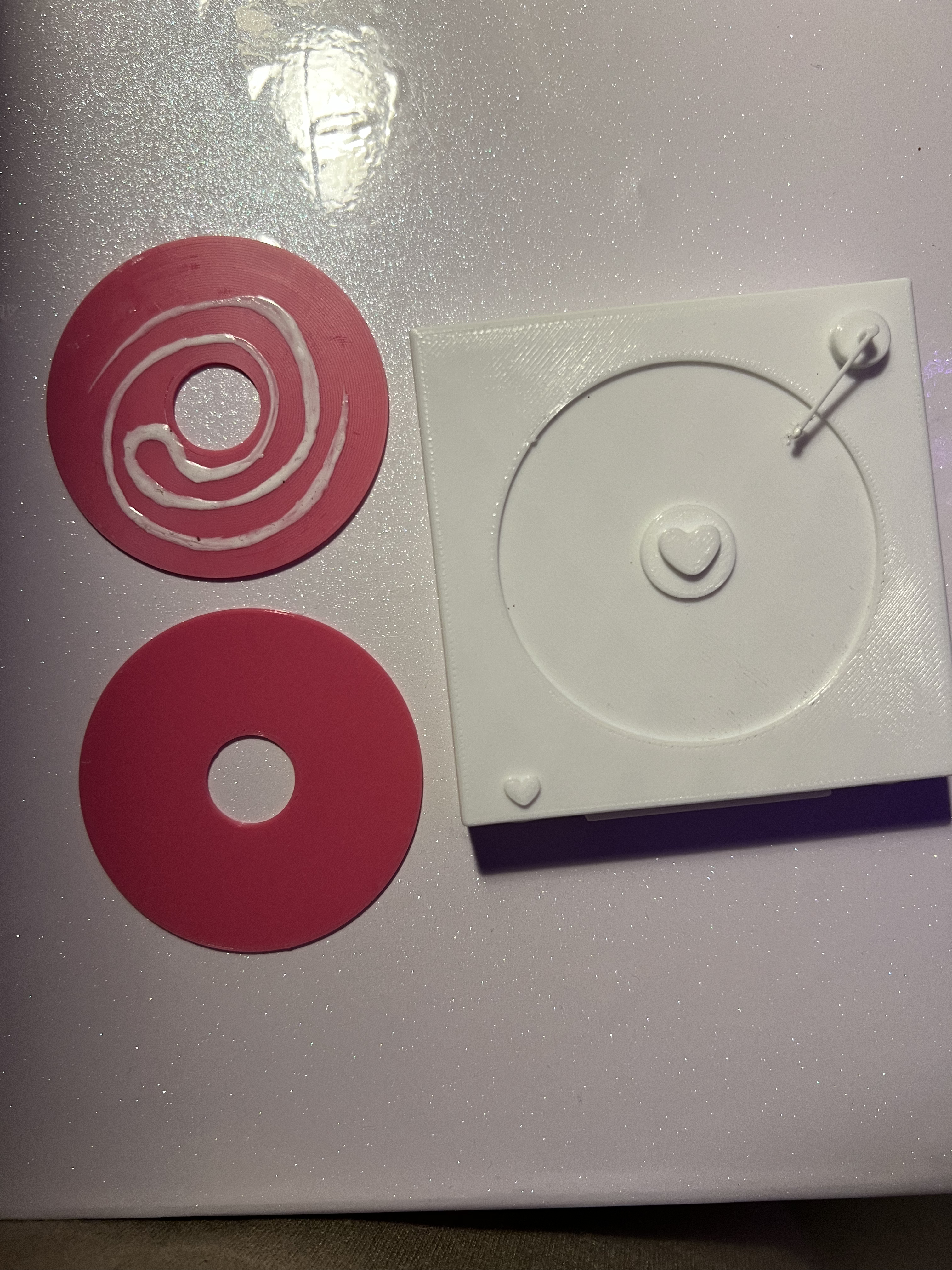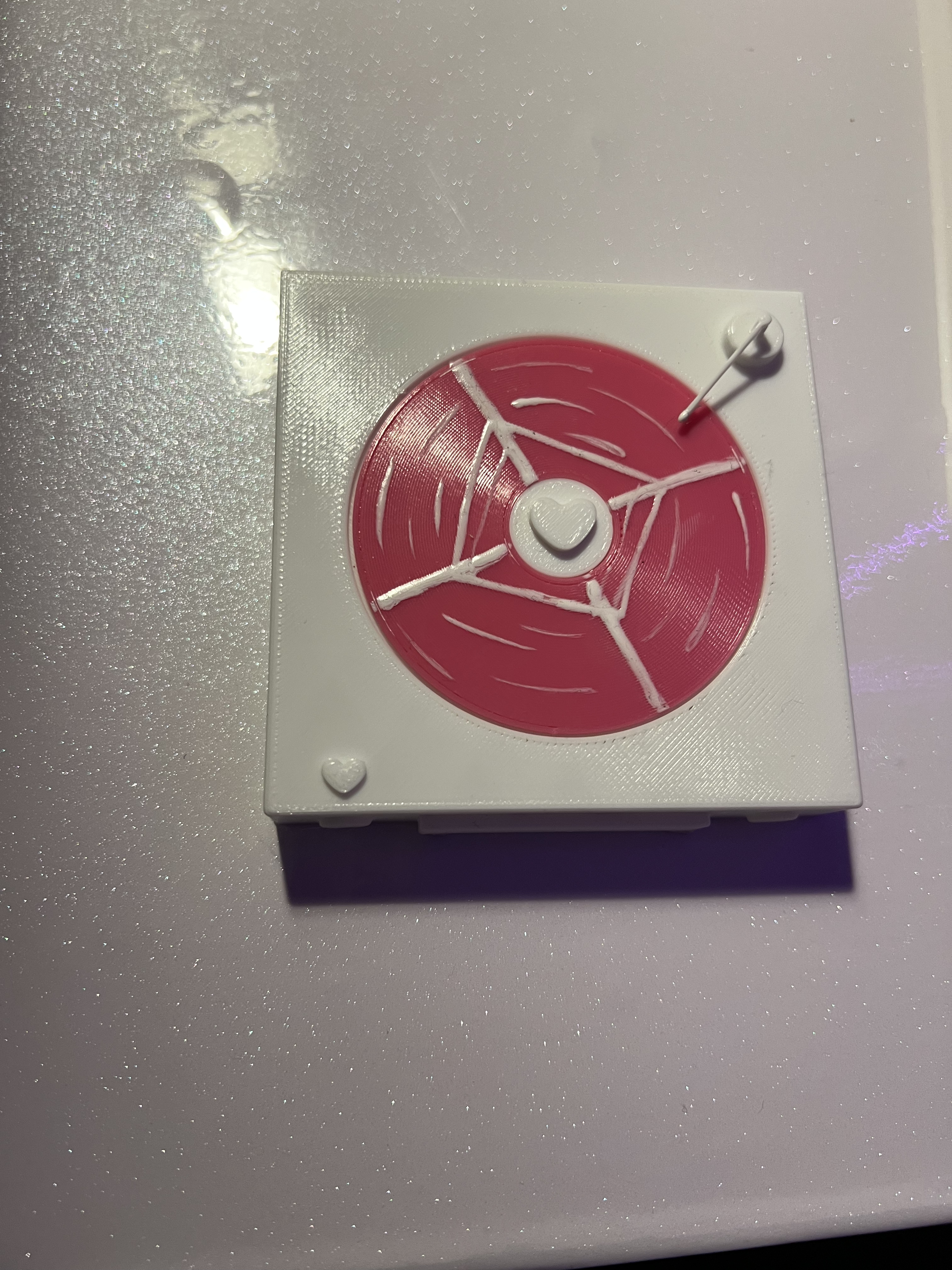 so I made a record player using white Filament.The moving part in my design is the vinyl record on the